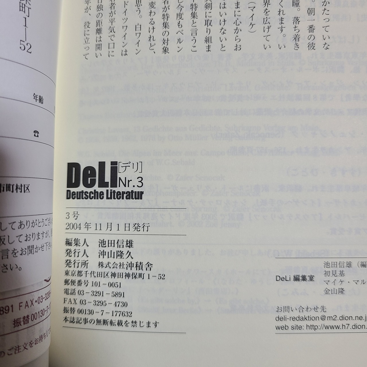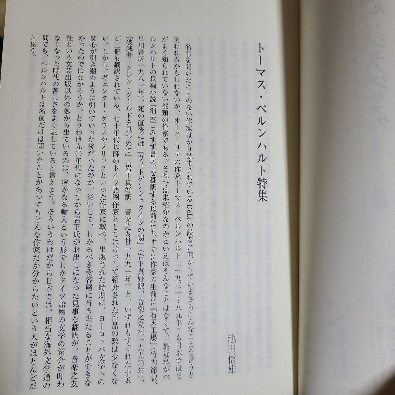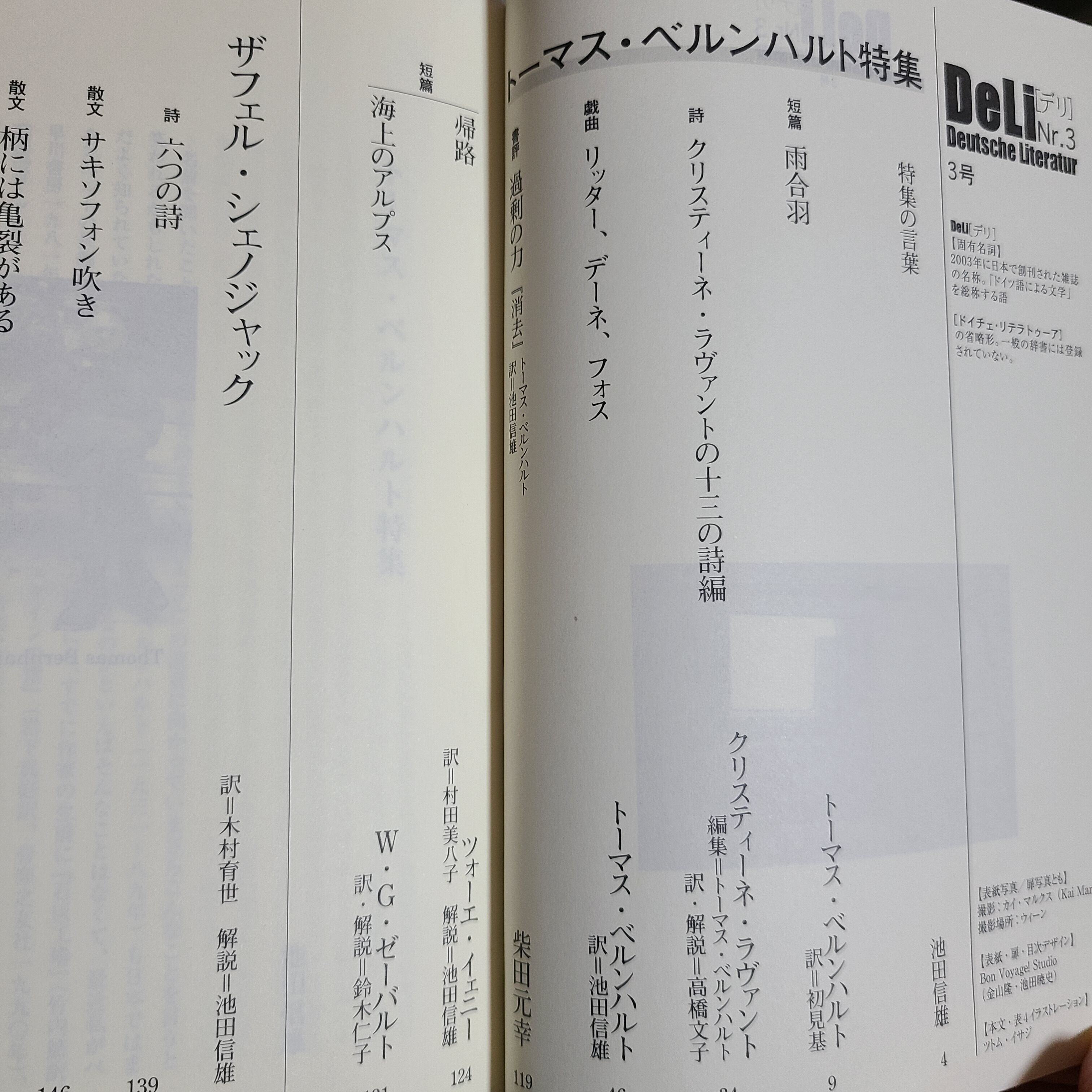 雑誌「DeLi Deutsche Literatur Nr.3 トーマス・ベルンハルト特集」(沖積舎、2004年)